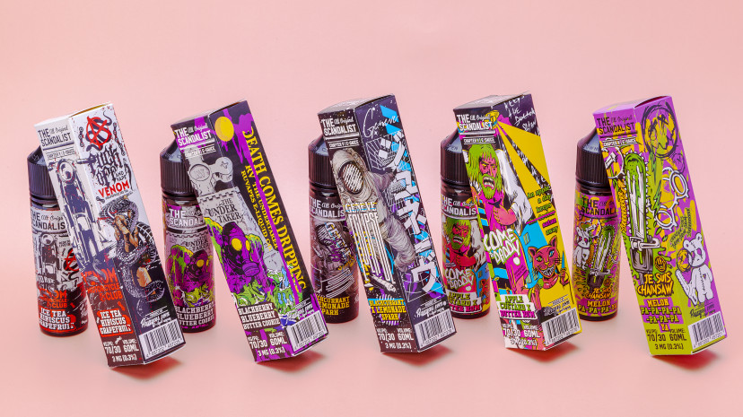 Хочется похвалить не только сами вкусы жидкостей, но и оформление флаконов – все напоминает стилизованные кинопостеры из конца ушедшего тысячелетия или афиши андеграундных музыкальных фестивалей, это всегда было визитной карточкой производителя.