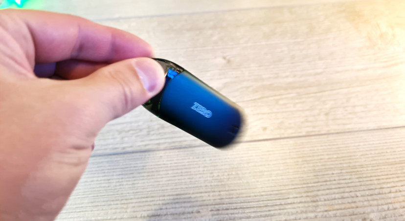 Проверять уровень жидкости можно не вынимая картридж, нужно наклонить Vaporesso Zero на 90 градусов: