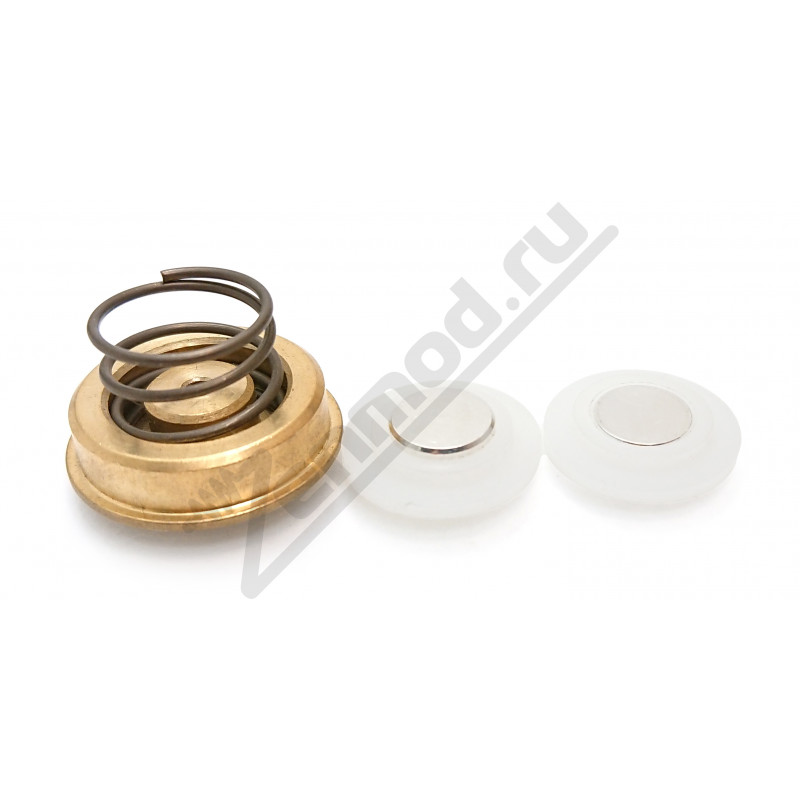 Сердцем мехмода выступает кнопка с постоянным контактом, оснащенная системой “классической цанги” – в этот раз лепестки разместились на теле мехмода, а кнопка “скользит” вдоль, что повышает пятно контакта и, как заявляет производитель, практически не требует чистки. В комплекте поставляется 3 проставки – одна для формата 18650, а две других позволят подстроить аккумулятор под разную длину пина.